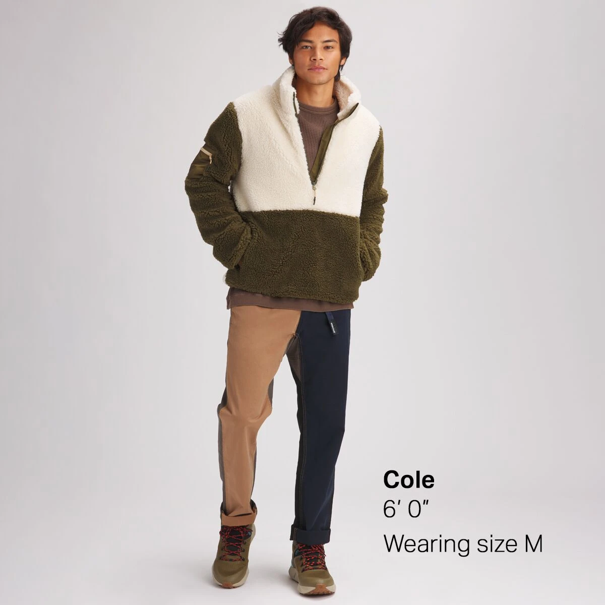- [face fabric] 100% polyester sherpa fleece, [overlay] 100% polyester, [lining] 95% polyester, 5% elastane mesh
