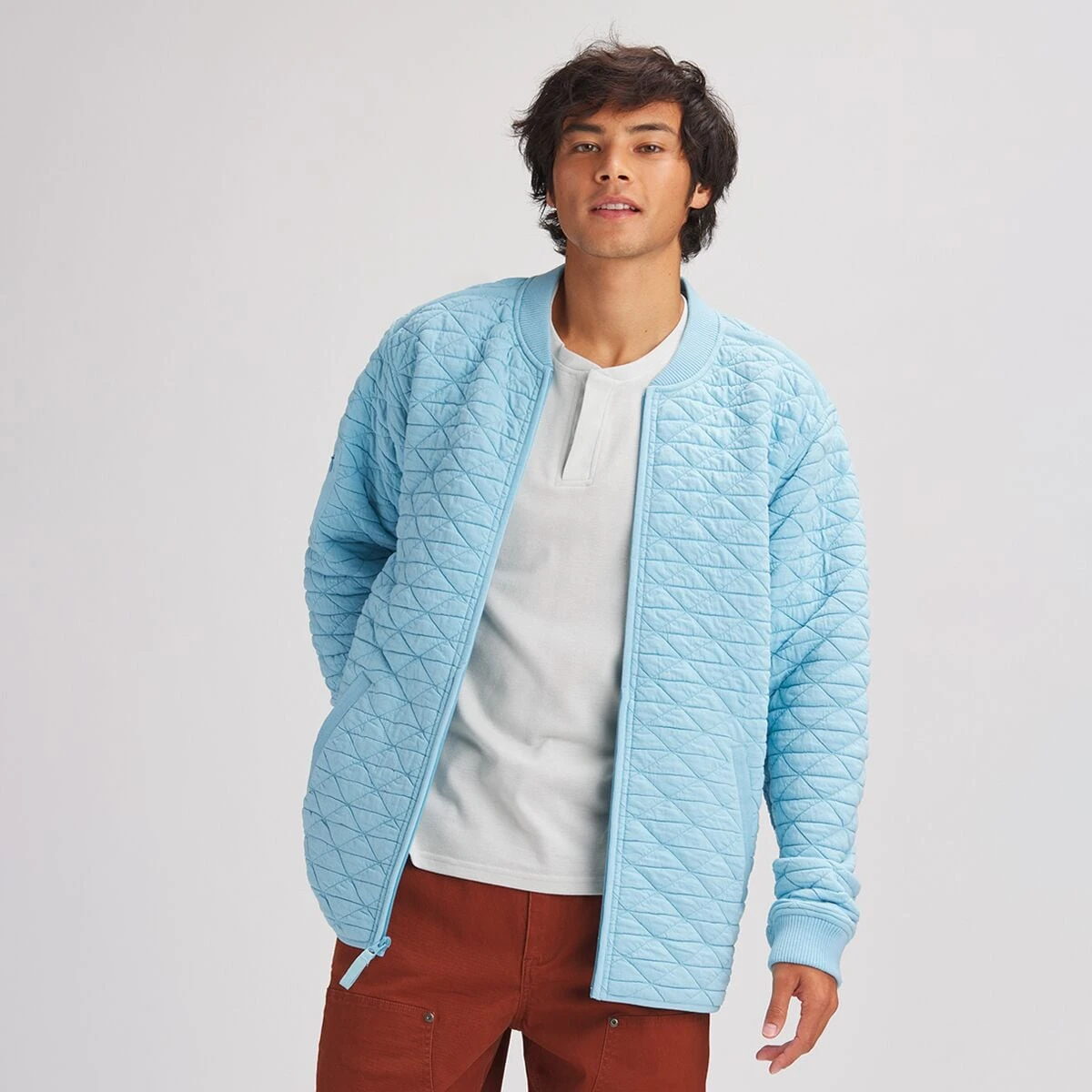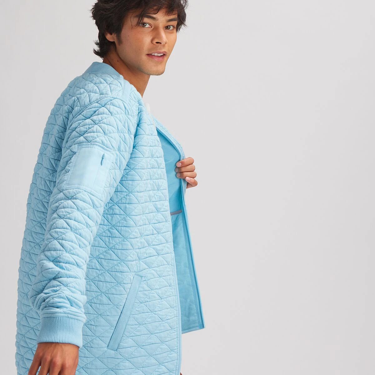 - Bomber jacket with heavyweight quilted fabric for autumnal insulation